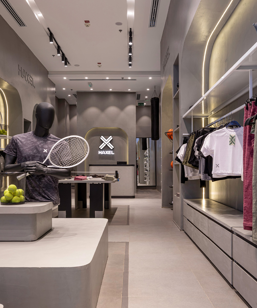 HAXEL A modern retail store featuring neatly displayed athletic apparel, footwear, and sports accessories in a sleek, minimalist interior.Type CommercialScope InteriorArea 100 m²Year 2025Locations Mall of Arabia, 6th of October Previous Next