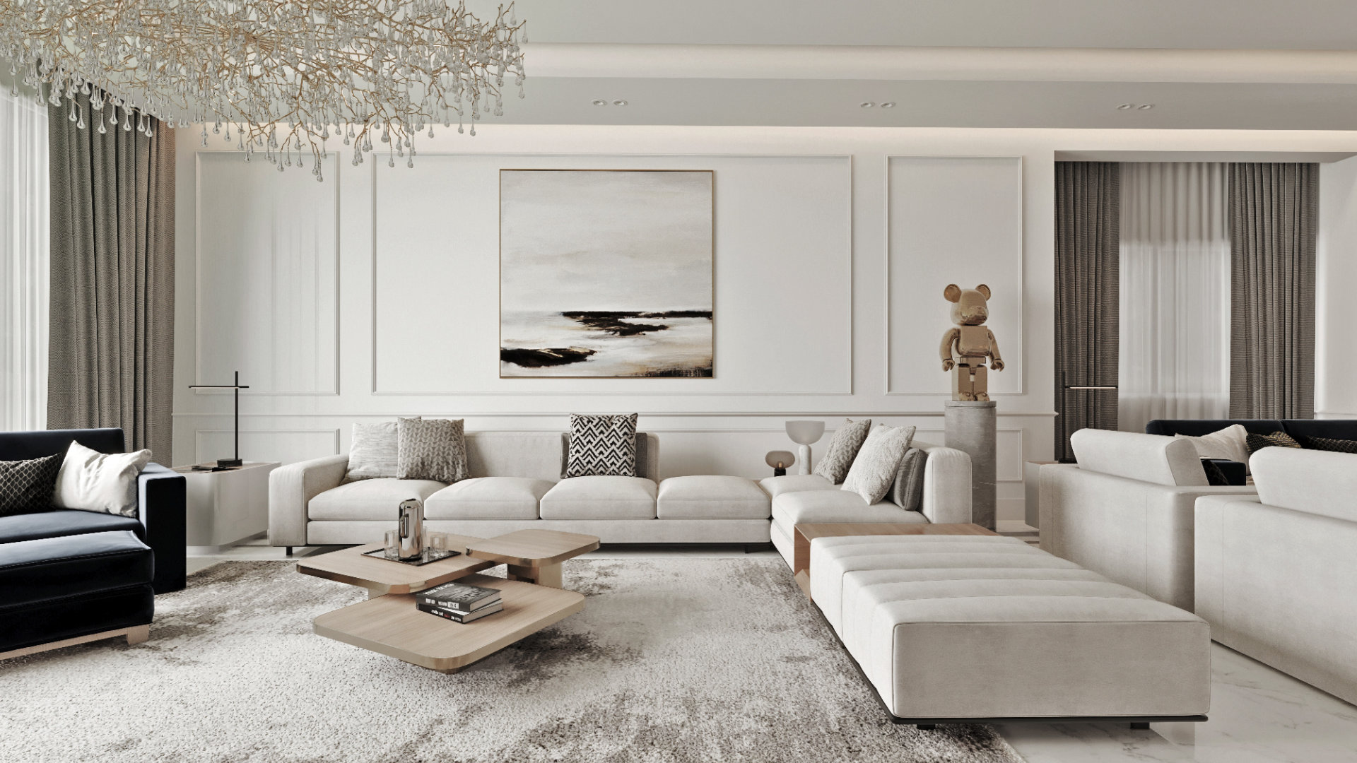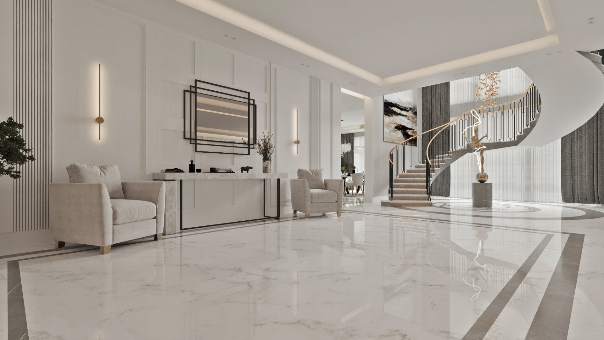 A modern and cozy interior design for a private villaو We focused on clean lines, warm colors, and smart space use to create a comfortable and elegant living space.